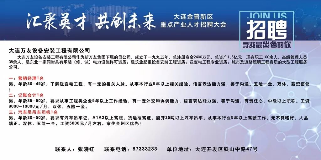 轉(zhuǎn)載請注明來自馬鞍山市深藍光電有限責(zé)任公司,本文標題:《大連后鹽招聘最新資訊》